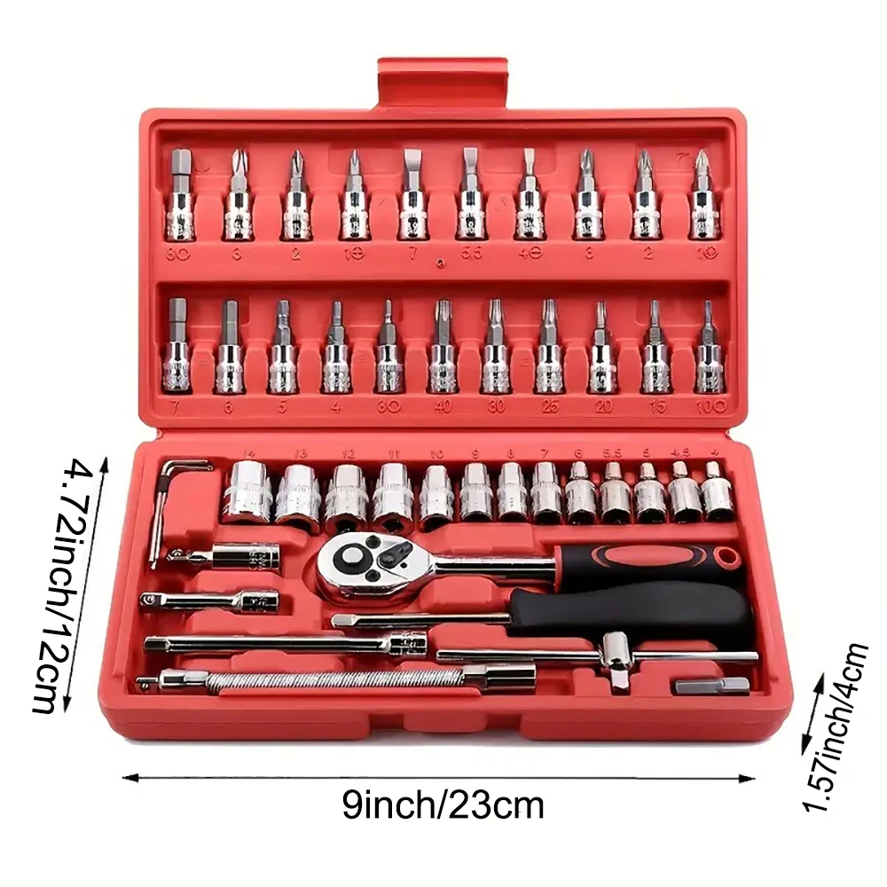 Get ready for any automotive or DIY project with the 46pcs 1/4 Inch Drive Socket Set. This comprehensive ratchet wrench set is perfect for mechanics and enthusiasts, providing the essential tools needed for efficient repairs and maintenance.
