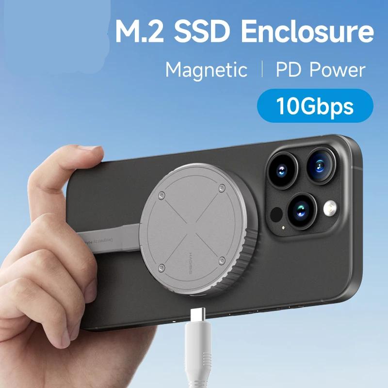 Elevate your storage with the Hagibis Magnetic M.2 2230 NVMe SSD Enclosure, a premium, portable storage solution for those seeking high-speed data transfer and a sleek, convenient design. Ideal for iPhone 16 Pro Max ProRes users, MacBook, and more, this MagSafe-compatible SSD case ensures seamless connectivity and easy use wherever you go.